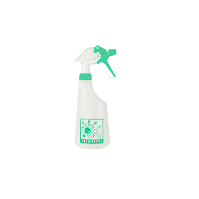 Die 600-ml-Sprühflasche von Cleaninq mit Desinfektionslogo ist eine zuverlässige Wahl zum genauen Dosieren und Versprühen von Desinfektionsmitteln. Die transparente Flasche ist mit einem grünen Piktogramm versehen, sodass Sie auf einen Blick erkennen können, wofür die Flasche bestimmt ist – ideal für eine hygienische und sichere Arbeitsumgebung. Dank des verstellbaren Sprühkopfes können Sie je nach Anwendung ganz einfach zwischen einem feinen Nebel oder einem kräftigen Strahl wählen. Die praktische Waage verhindert Verschwendung, indem sie das Produkt genau abmisst. Diese aus robustem Kunststoff gefertigte Flasche ist beständig gegen die meisten aggressiven Reinigungsmittel. Darüber hinaus ist es für HACCP-Anwendungen in verschiedenen Farben erhältlich. Merkmale: