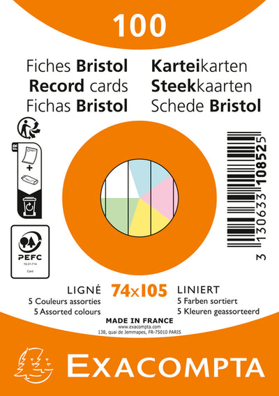 Exacompta - Flashcard 74x105mm Linie 5 Farben 100 Blatt