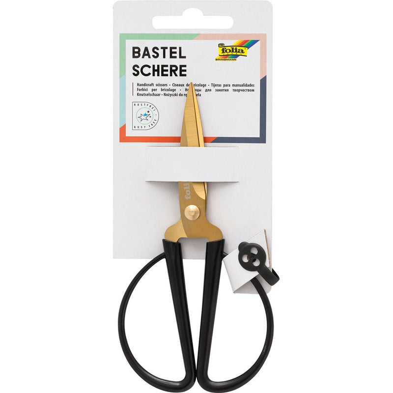 Geeignet für Papier, Pappe, Stoff, Pflanzen usw. Goldfarben mit schwarzen Metallgriffen. Edelstahl. 14,5 cm.
