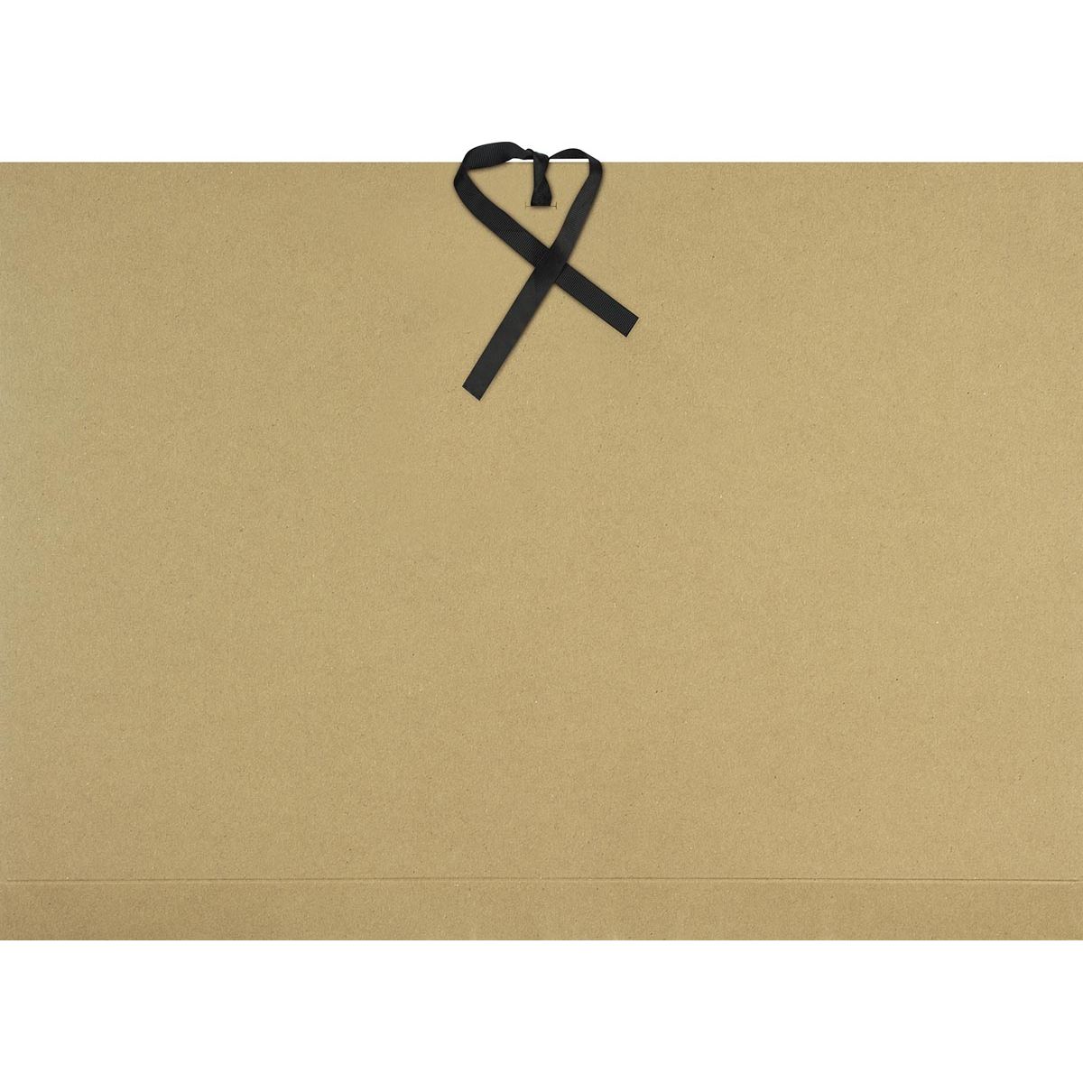 Aus braunem Karton von 500 g/m². Mit Bändern und 3 Klappen. Mit gerillter Rückseite und Seiten für dicke Papierstapel