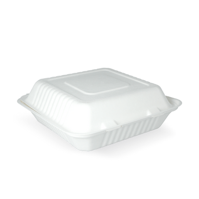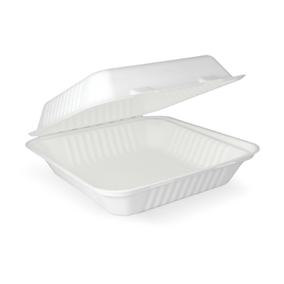 Diese Menübox mit den Maßen 23,3 x 23,3 x 8,1 cm verfügt über einen praktischen Klappdeckel und ist sowohl für die Mikrowelle als auch für den Gefrierschrank geeignet. Hergestellt aus Bagasse, einem natürlichen Abfallprodukt aus Zuckerrohr, bietet diese Menübox eine nachhaltige und plastikfreie Option für Ihr Essen zum Mitnehmen