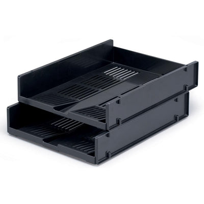 Stapelbare Briefablage für das A4-Hochformat. 25,5 x 33,4 x 6,2 cm (B x T x H). Sie können die Höhe der Briefablagen erhöhen durch: Metallstangen (Ref. 1701321). Farbe: Schwarz.