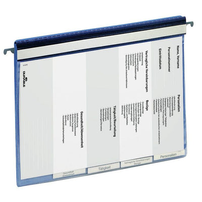 *Rückseite aus blauer Folie mit transparenter Innentasche für ungelochte Dokumente.