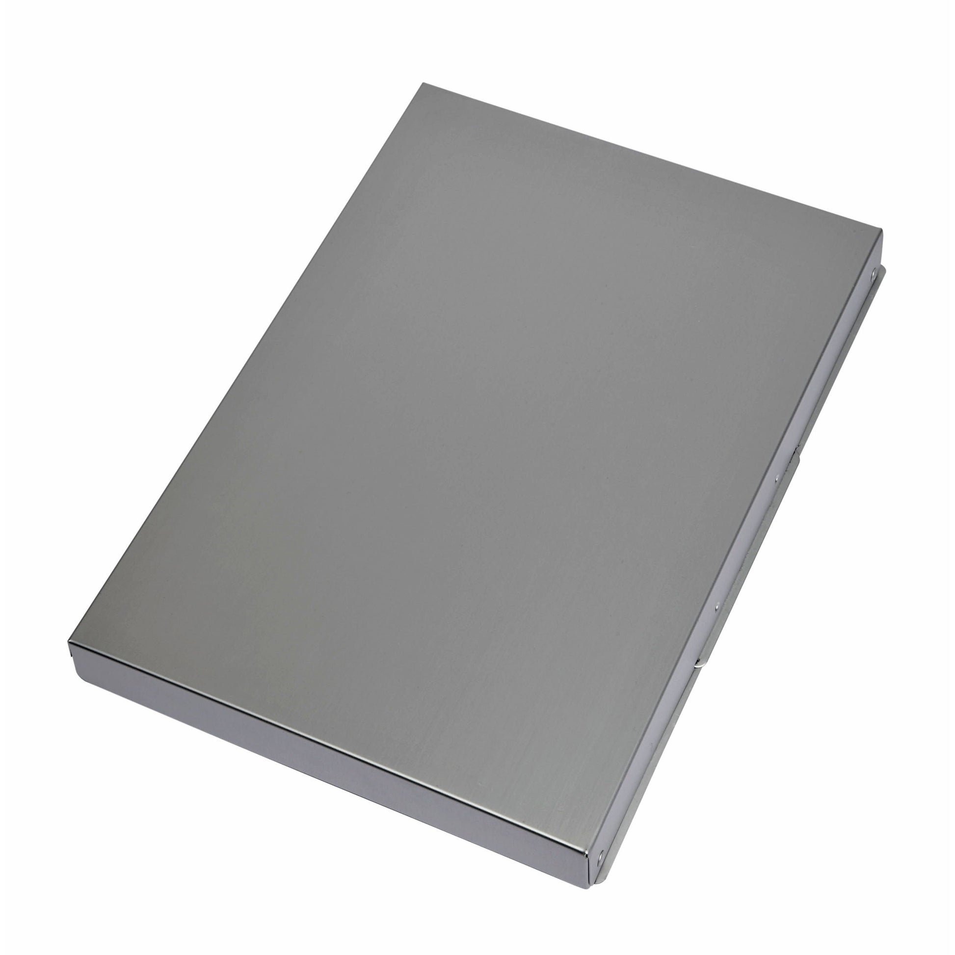 - Extrem robuste Klemmmappe aus eloxiertem Aluminium mit praktischem Stauraum.