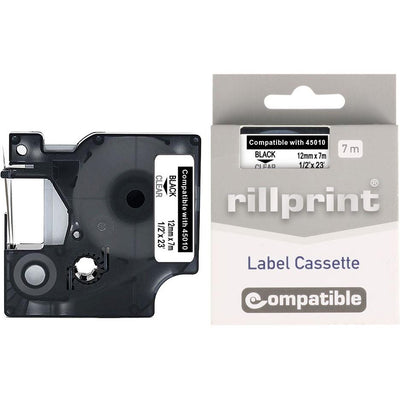 Rillprint - kompatibel D1 e für 45010, 12 mm, schwarz auf transparent