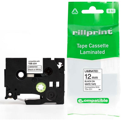 Rillprint – kompatibler TZe e für TZe-231, 12 mm, schwarz auf weiß