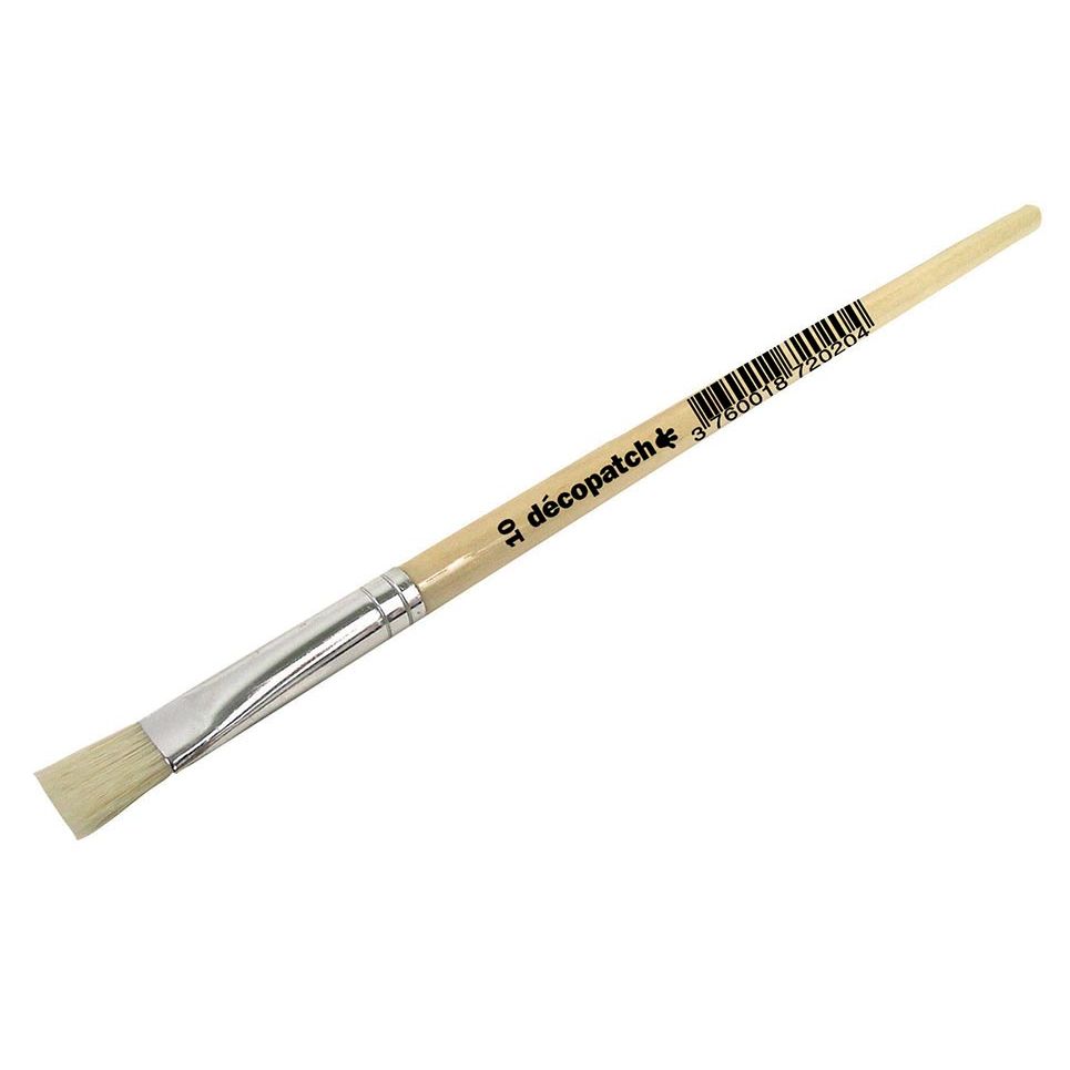 From pure silk. Brush suitable for working with Décopatch glue and paper. Clean with lukewarm water and some washing-up liquid. Hang to dry 'head up'. If the brush is hardened, use some soft dissolvant.