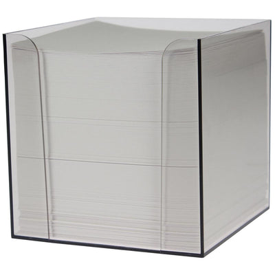 Plastic holder, ft 9.5 x 9.5 x 9.5 cm. Filled with 700 sticky notes, ft 9 x 9 cm. Certificate: PEFC - C000782