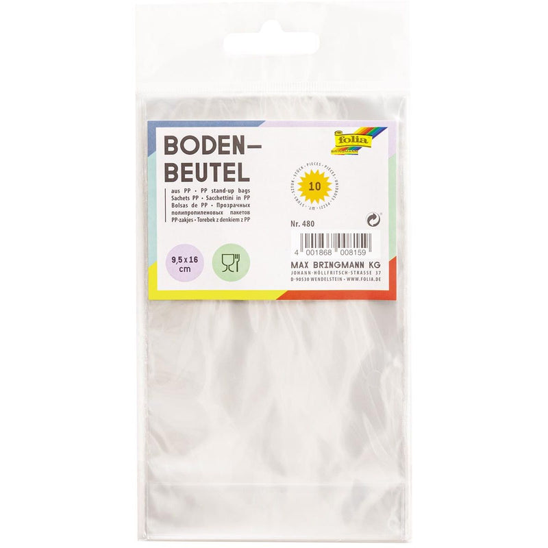 Transparent bag with flat bottom. Made of PP, suitable for food.
