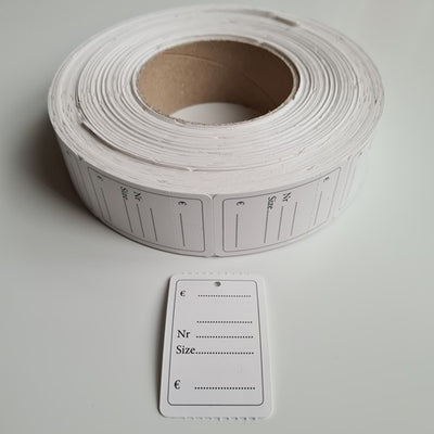 Discover the versatility and efficiency of our hanging labels on a roll. These 40x60mm black printed labels are perfect for organizing and pricing products, with 1000 pieces per roll. Ideal for use in small offices, by self-employed people and home workers who need a reliable and professional solution for product labeling.