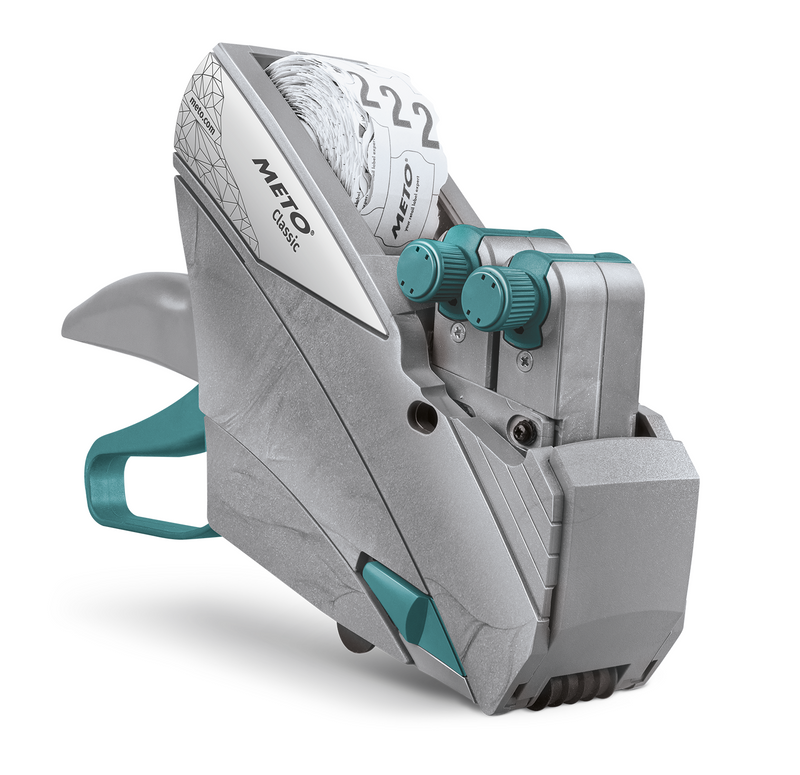 This labeller is designed for anyone who needs a reliable and easy-to-use product labeling solution. Whether you run a small office, work from home or are self-employed, the Meto Classic L 2332 offers the flexibility and precision you need. The top line of the price tongs has 12 positions for numbers, where the first position can be set to numbers 1 to 7 and letters S, M, L, XL. This makes it easy to create different product formats or