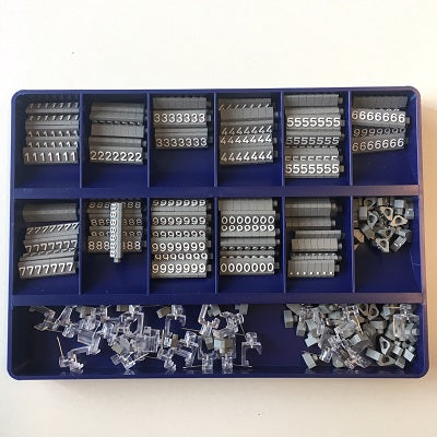 This price cassette is perfect for self-employed people, home workers and small offices who need a compact and user-friendly way to present prices. The set contains gray price cubes with white numbers and characters, which thanks to the "Lego"