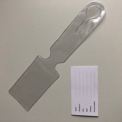 Discover the versatility of our transparent plastic suitcase tag, perfect for easily identifying luggage or office supplies. With a handy card insert and a die-cut design, this label offers an efficient and sustainable solution for both self-employed people and small offices.