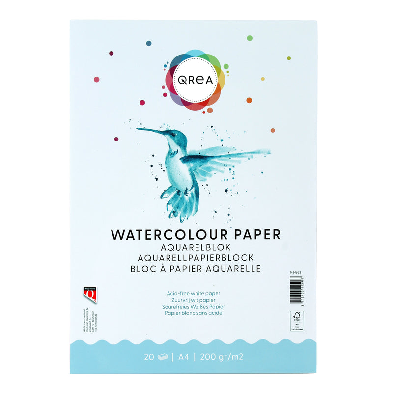 -certified, which means that the paper has been sustainably produced. It is available in various sizes, so you can always choose the right size for your specific art projects. Whether you are self-employed, work from home or work in a small office, the Qrea A4 Watercolor Block offers the quality and flexibility you need.