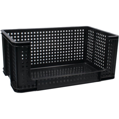Made of recycled PP With opening at the front Stackable, very strong Rounded corners 100% recyclable