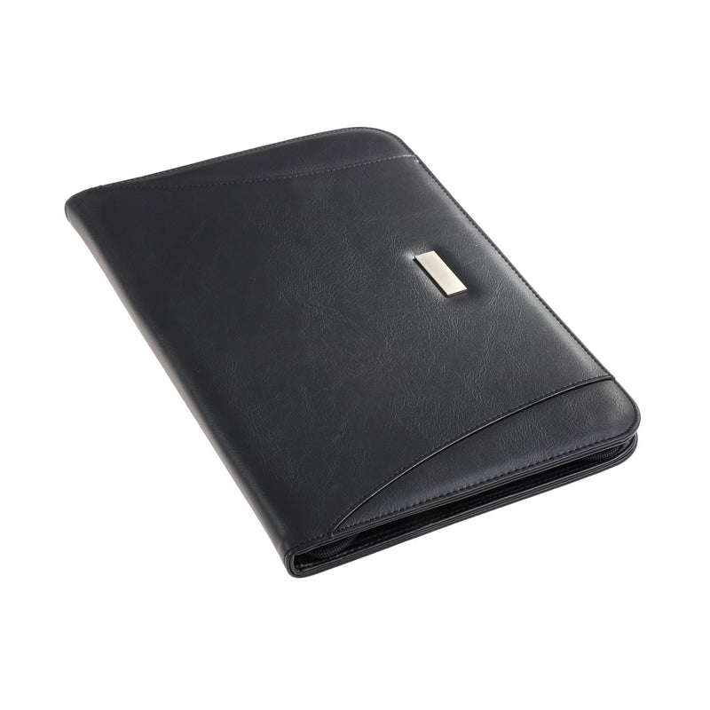 The folder can be fully closed with a zipper, which provides extra security and protection for your documents. A metal plate is attached to the outside on which a text or logo can be applied by laser engraving, which gives a personal touch to your writing folder.
