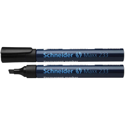 NB! You must purchase at least 10 of Schneider permanent marker Maxx 233, black at a time. The price stated for this item is per piece, the image may show multiple pieces. The image may therefore differ.