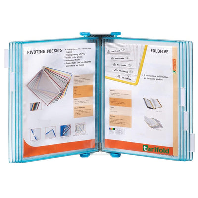 For ft A4. Wall kit with 10 transparent bags and 5 riders of 50 mm. The plugs allow better support of the bags and easier reading. The elements can be placed next to each other as desired. Bags made of recyclable PP. Colour: transparent blue.