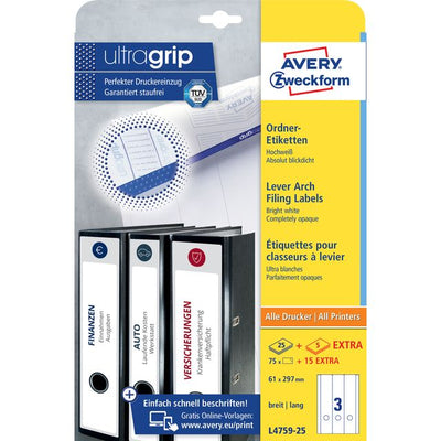 Avery Zweckform - Etiqueta trasera ancha/larga 61x297mm autoadhesiva blanca