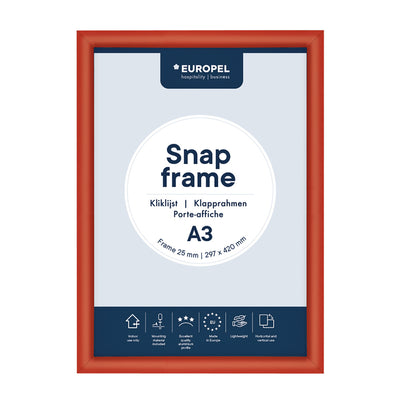 Dale a tus carteles un escenario elegante con nuestro versátil marco de clic de aluminio Europel Premium. Este marco clic de alta calidad, también conocido como marco para póster o marco de intercambio, ofrece una presentación rápida, sencilla y representativa de sus carteles A3. En color rojo; Ideal para utilizar rutas de escape, normas de seguridad, etc. Características clave: