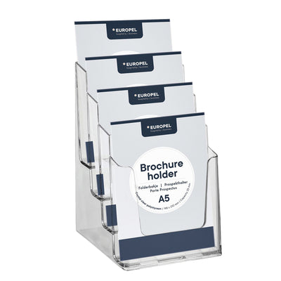 Europel - Porta folletos peel 4 compartimentos A5 transparente