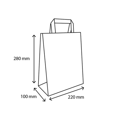 Estas bolsas de papel son perfectas para uso en oficina y aptas para envasar productos de hasta 3 kg. Con un tamaño de 22 x 10 x 28 cm y un aspecto natural gracias al papel kraft, son ideales para llevar o entregar a domicilio. A pesar de su sensibilidad al calor, la humedad y los objetos punzantes, con el cuidado adecuado constituyen una alternativa fiable a las bolsas de plástico.
