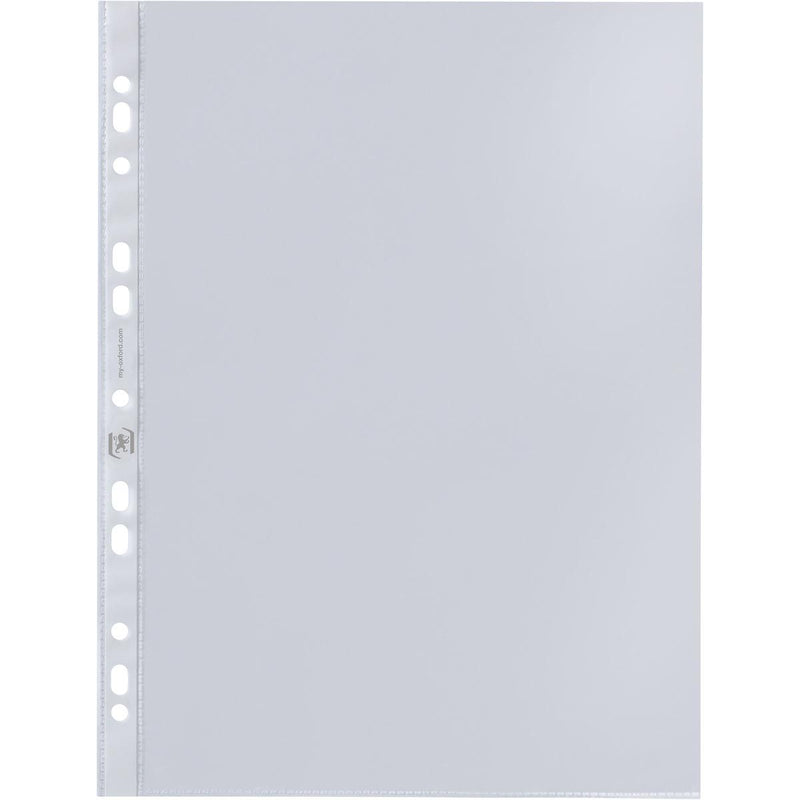 Oxford - Bolsa de exhibición, A4, de PP transparente, perforación de 11 orificios, 50 micras, paquete de 100 unidades