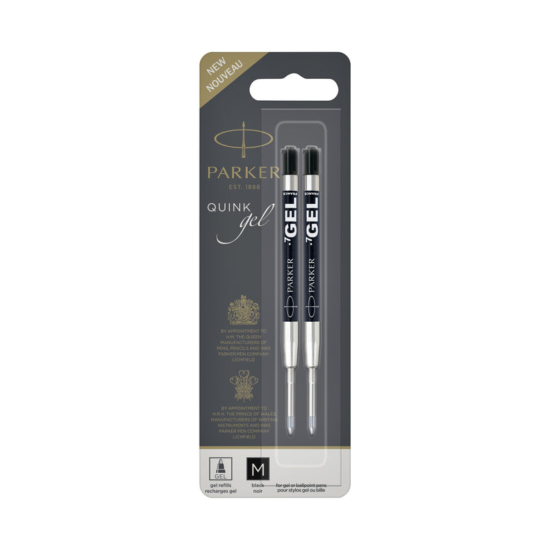 Parker - Recambio escritor gel Quink mediano negro blister de 2 piezas