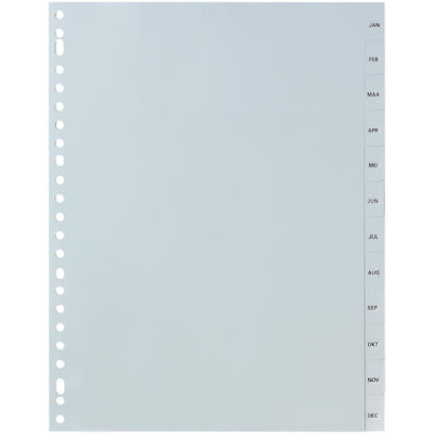 Pergamia - pestañas, tamaño A4, perforadora de 23 agujeros, PP gris, enero-diciembre