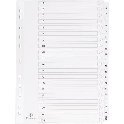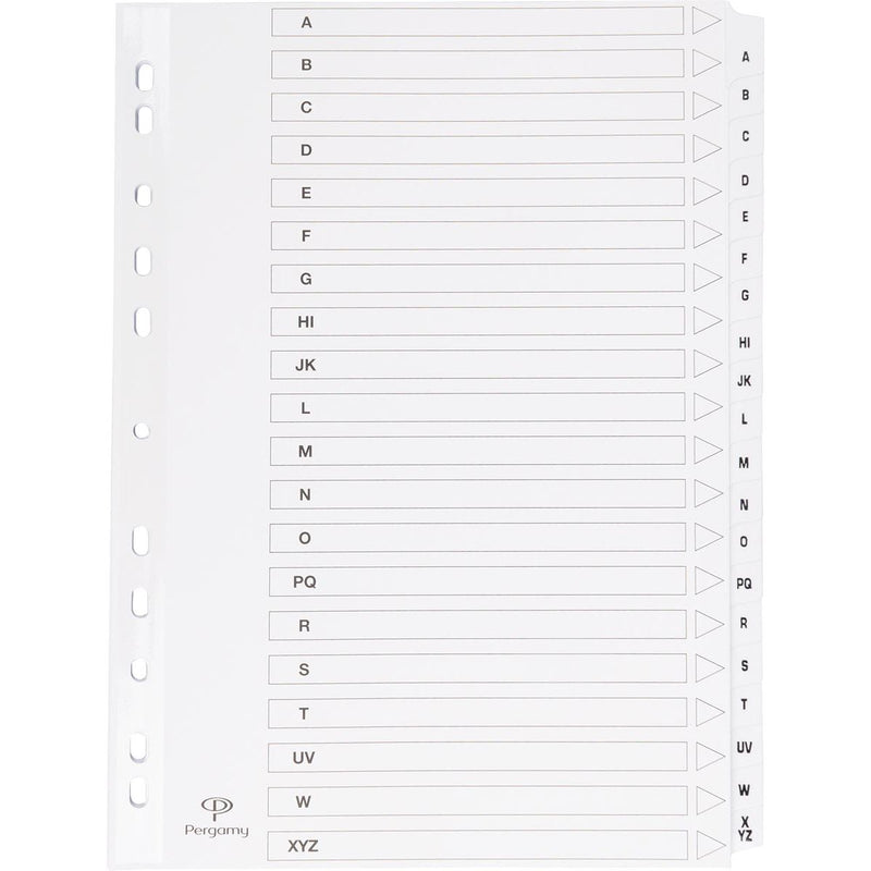 Pergamy - pestañas con hoja índice, pies A4, perforadora de 11 agujeros, A-Z con 20 pestañas