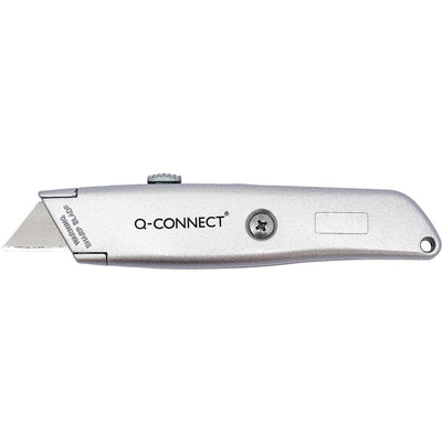 Cortador en versión metálica, fabricado en aluminio. Fácilmente ajustable. Bloqueo automático de la hoja. Hoja de 18 mm. Color: plateado.