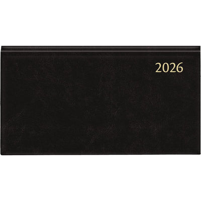 1 semaine par 2 pages Format horaire (8h - 20h) 6 langues Reliure parfaite Papier blanc de 80 g/m² 128 pages Mise en page paysage Avec ruban de lecture et coins perforés Couverture cartonnée simili cuir Ft 165 x 90 mm Certificat : FSC