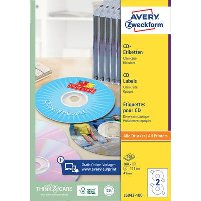 Avery Zweckform - Étiquette Zweckform L6043-100 CD blanc 200 pièces