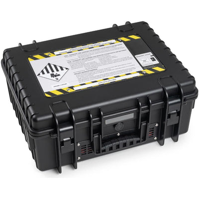 Uniek veiligheidssysteem, automatisch sluitend bij gevaar Wanneer een lithium-ion batterij ontvlamt, blijft de explosie en brand in de koffer Beveiligde kabeldoorvoer om batterijen veilig op te laden Met schuimrubber om de batterijen op hun plek te houden tijdens transport Met actiefkoolfilter dat ontsnappende gassen en roetvorming bij een eventuele brand vermindert Met een drukventiel om overdruk in geval van brand te laten ontsnappen Goedgekeurd volgens ADR klasse 9, P903 en P908