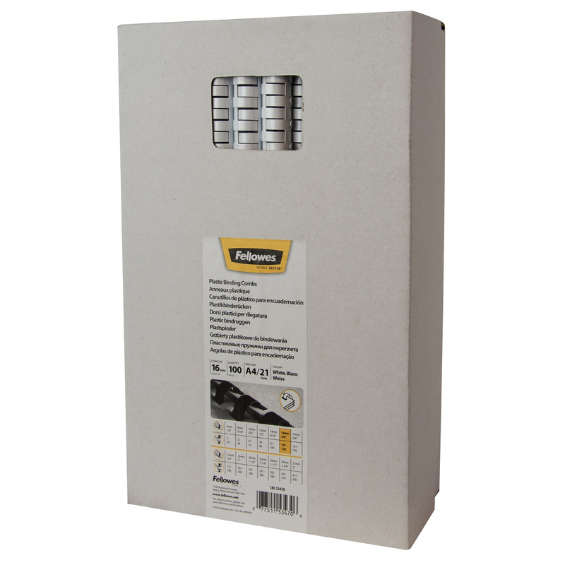 Fellowes - Reliure dos 16mm 21 anneaux a4 blanc