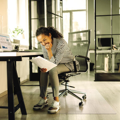 Fabriqué en PVC Protège le sol contre les dommages causés par les roulettes du fauteuil Avec évidement Contient jusqu'à 25 % de matériaux recyclés, Fabriqué avec jusqu'à 30 % d'énergie renouvelée. Pi 120 x 90 cm