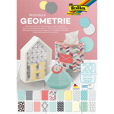 Folia - Bloc de papier Géométrie 24x34cm 270gr 20 feuilles assorties