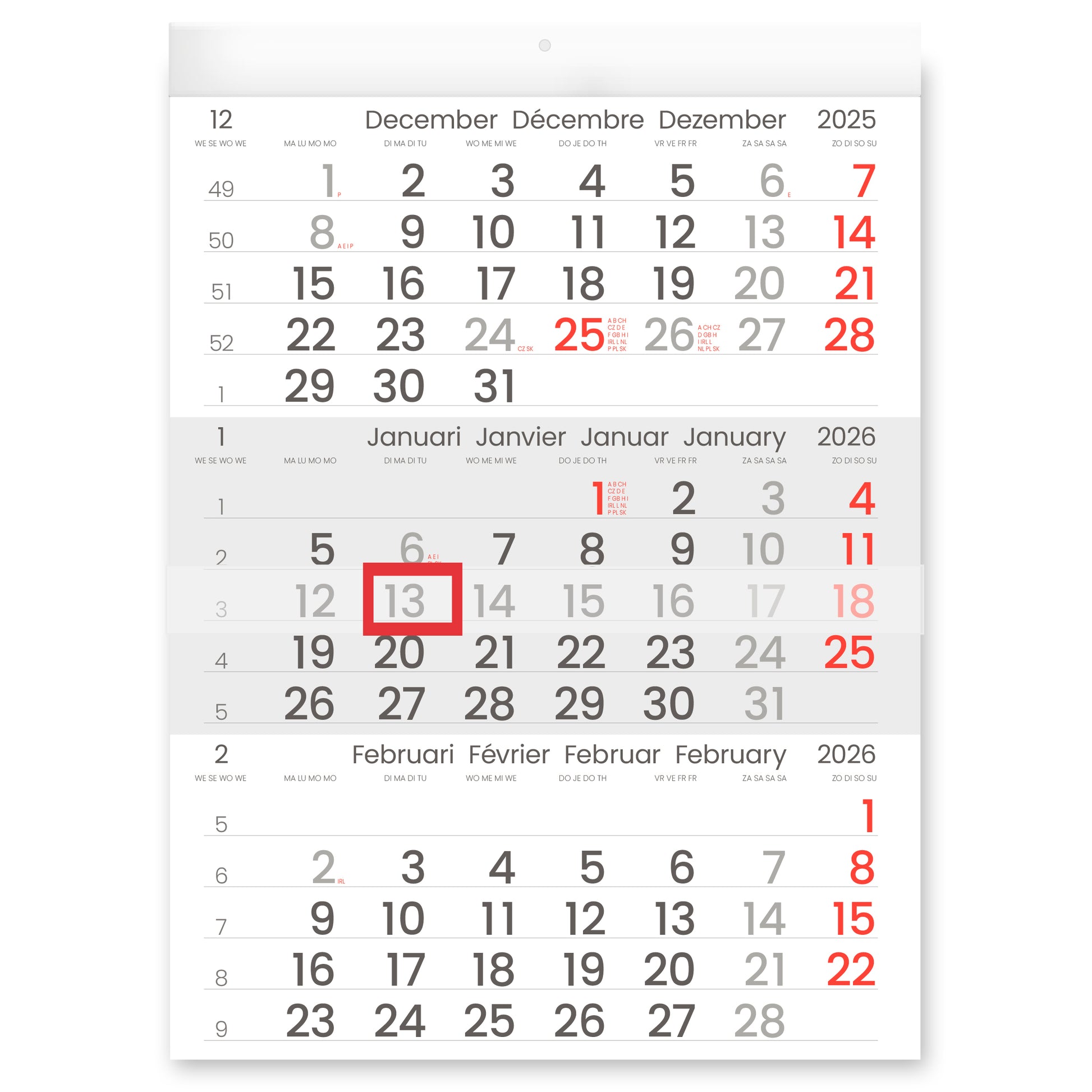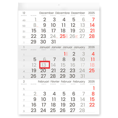 - Nouveau calendrier 3 mois au format 'compact', dimensions 300x400mm.