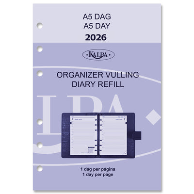 La recharge A5 offre 360 pages de papier blanc de haute qualité avec une impression bleue, ce qui la rend parfaite pour une utilisation bureautique. Chaque page comporte un emploi du temps pré-imprimé, afin que vous puissiez planifier votre journée rapidement et facilement. De plus, un jour sur deux contient un bloc pratique avec les jours du mois, qui offre un aperçu supplémentaire.