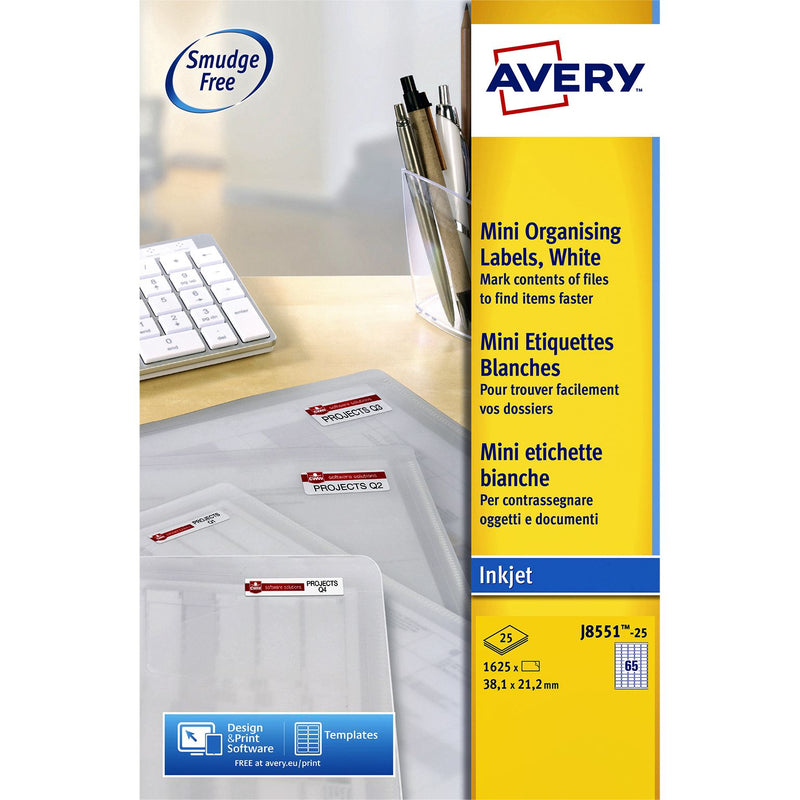 Avery - Label J8551-25 38,1x21,2 mm trasparente 1625 etichette | 5 pezzi