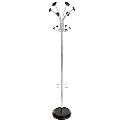Realizzato in acciaio lucido di alta qualità con finitura cromata, l'appendiabiti irradia una leggera lucentezza e un aspetto fresco. La base zavorrata con alloggiamento in plastica garantisce stabilità, in modo che l'appendiabiti rimanga saldamente in posizione.
