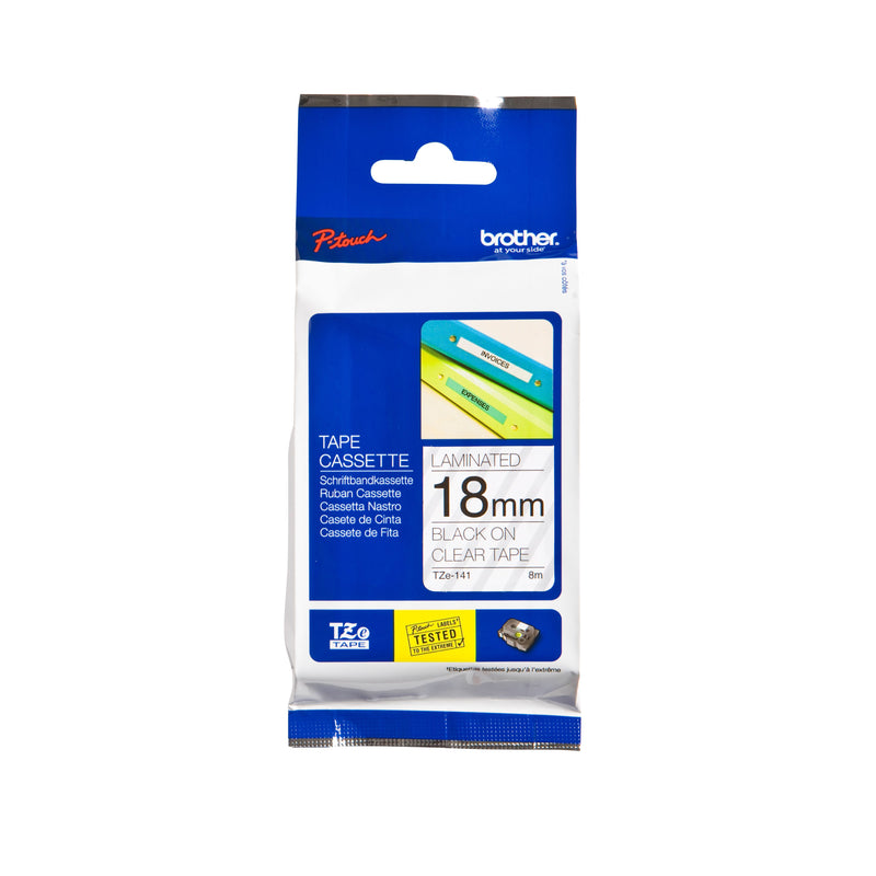 Brother - Etichetta P-touch TZe-141 standard 18 mm nero su trasparente