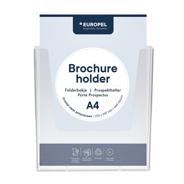 Questo vassoio per brochure offre una presentazione cristallina per tutte le tue brochure, cataloghi e cartellini dei prezzi. Realizzato in plastica robusta e di alta qualità, spessa 3 mm, è la soluzione ideale per un aspetto organizzato e professionale alla parete.