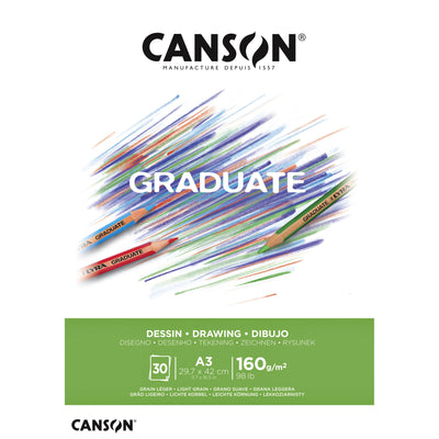 Canson - Carta da disegno Graduate Drawing 30 fogli 160gr A3 bianco brillante | 5 pezzi