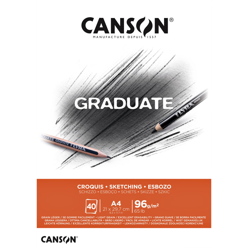 Canson - Carta da disegno Graduate Sketch 40 fogli 96gr A4 bianco naturale | 5 pezzi