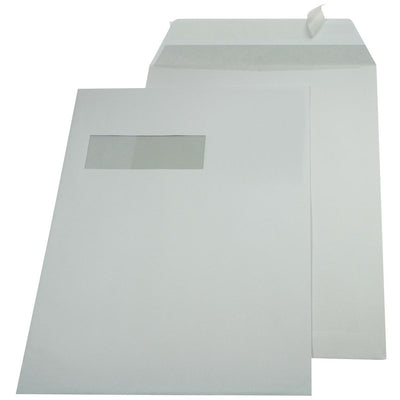 Buste tascabili per l'invio di lettere, preventivi, ecc. Buste robuste in carta bianca senza pasta legno da 100 g/m². Interni grigi. Scatola da 250 pezzi. Certificato FSC.