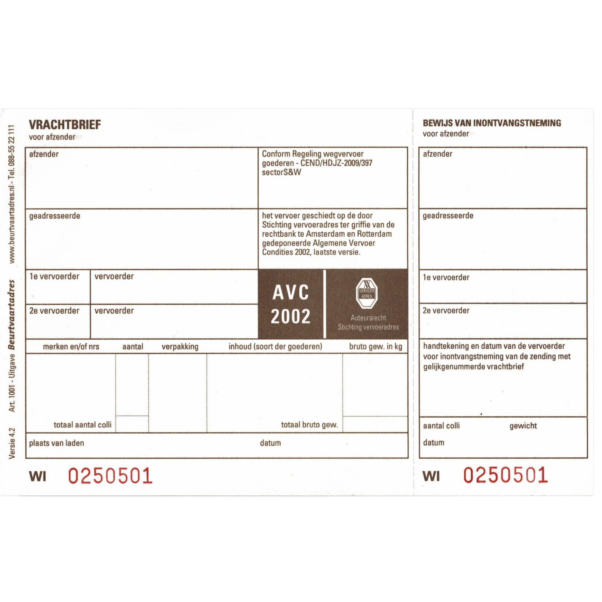 IEZZY - Lettera di vettura BVA 1001 19x12 cm 3 volte 100 pezzi vuoti