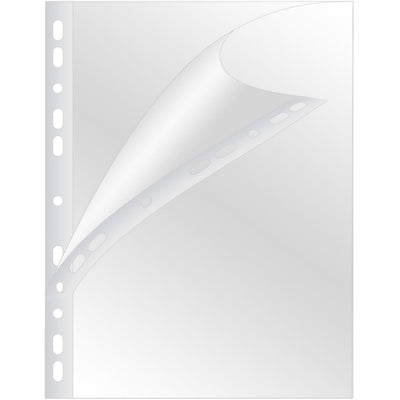 Q-CONNECT - busta da esposizione perforata A4 perforazione a 11 fori PP lucido, confezione da 100 pezzi