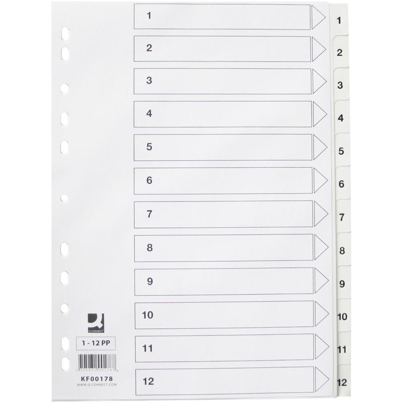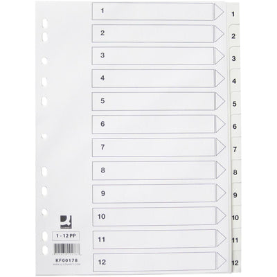 Q-CONNECT - inserti a rubrica, A4, PP, perforazione a 11 fori, con indice, set da 1-12, bianco