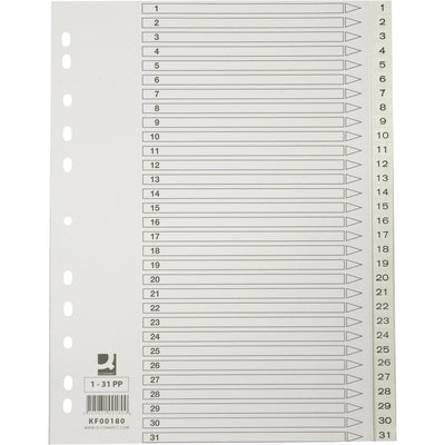 Q-CONNECT - inserti a rubrica, A4, PP, perforazione a 11 fori, con indice, set da 1-31, bianco